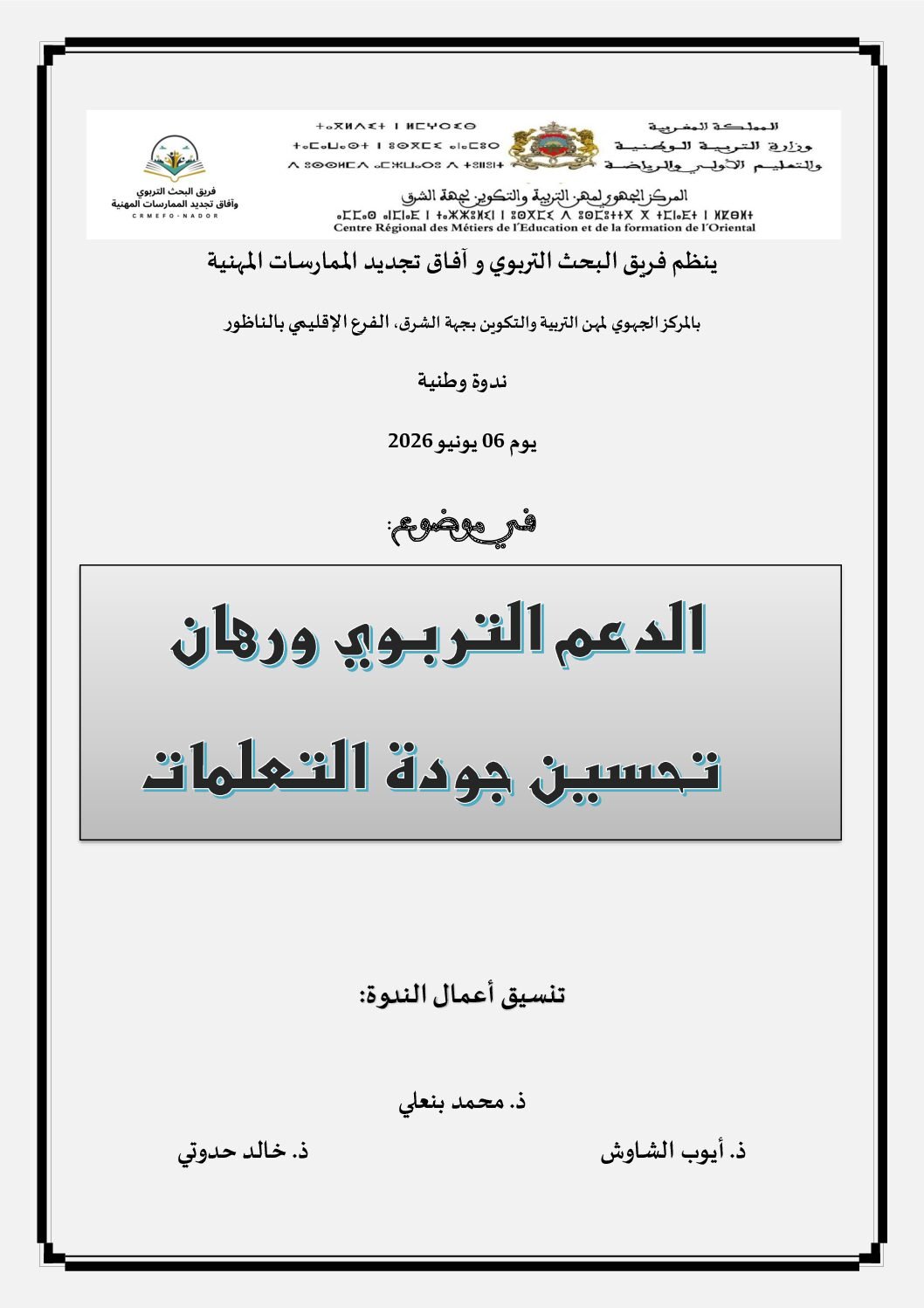 ندوة الدعم التربوي (1) Post Views: 5 تصفّح المقالات ندوة دولية حول موضوع : المدرسة ورهانات القيم في سياق التحولات الرقمية وثورة الذكاء الاصطناعي : الأبعاد والتحديات ندوة وطنية في موضوع ” القيم في منظومة التربية والتكوين -مواد الاجتماعيات أنموذجا”